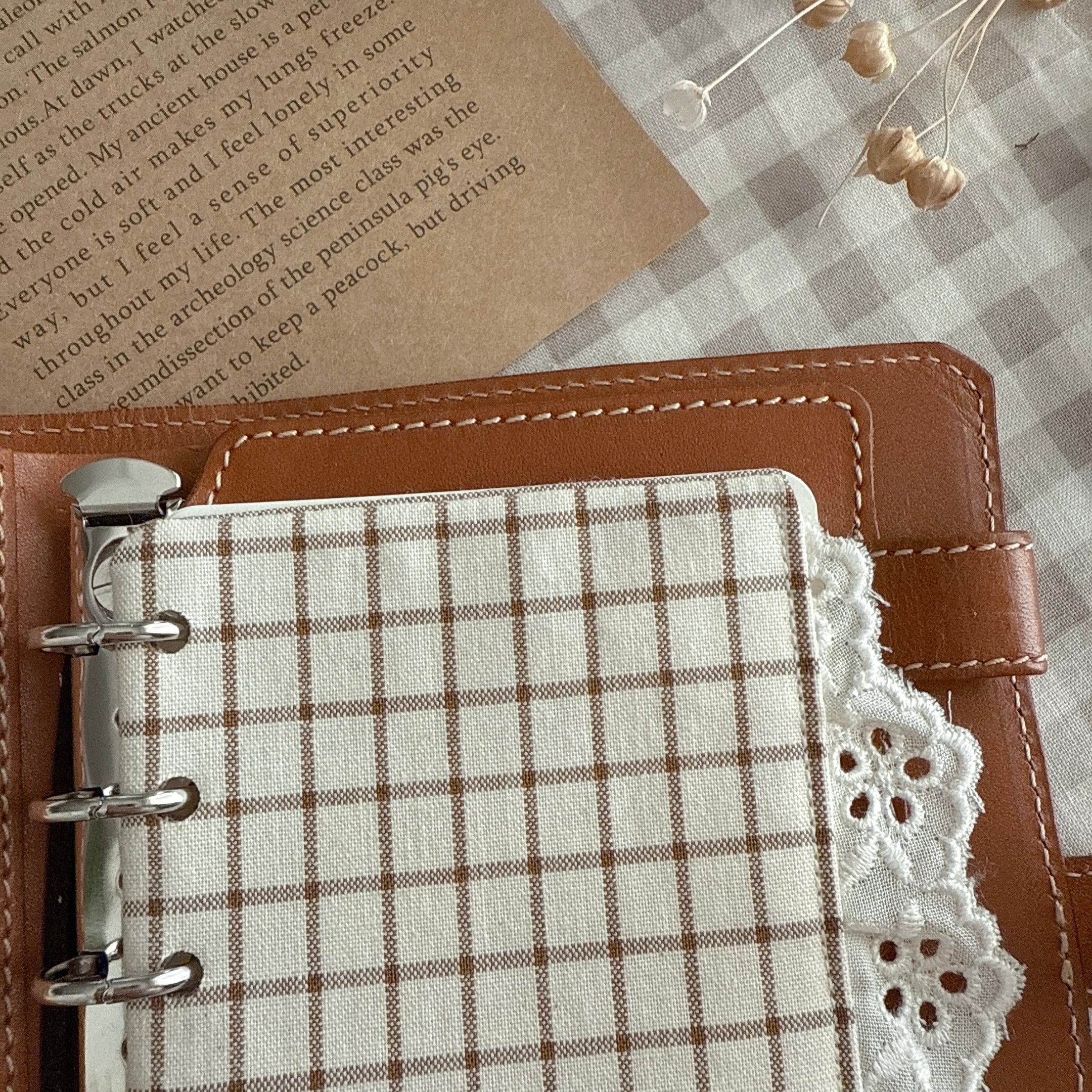 可愛いウィンドウチェックチェックとレースを合わせて、手帳に挟むポケットリフィルです(*^^*)