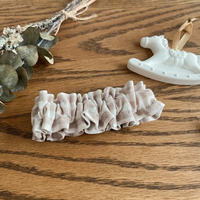 【Mサイズ】ギンガムチェックのふんわり手帳バンド/文庫本ブックバンド/ナチュラルベージュ
